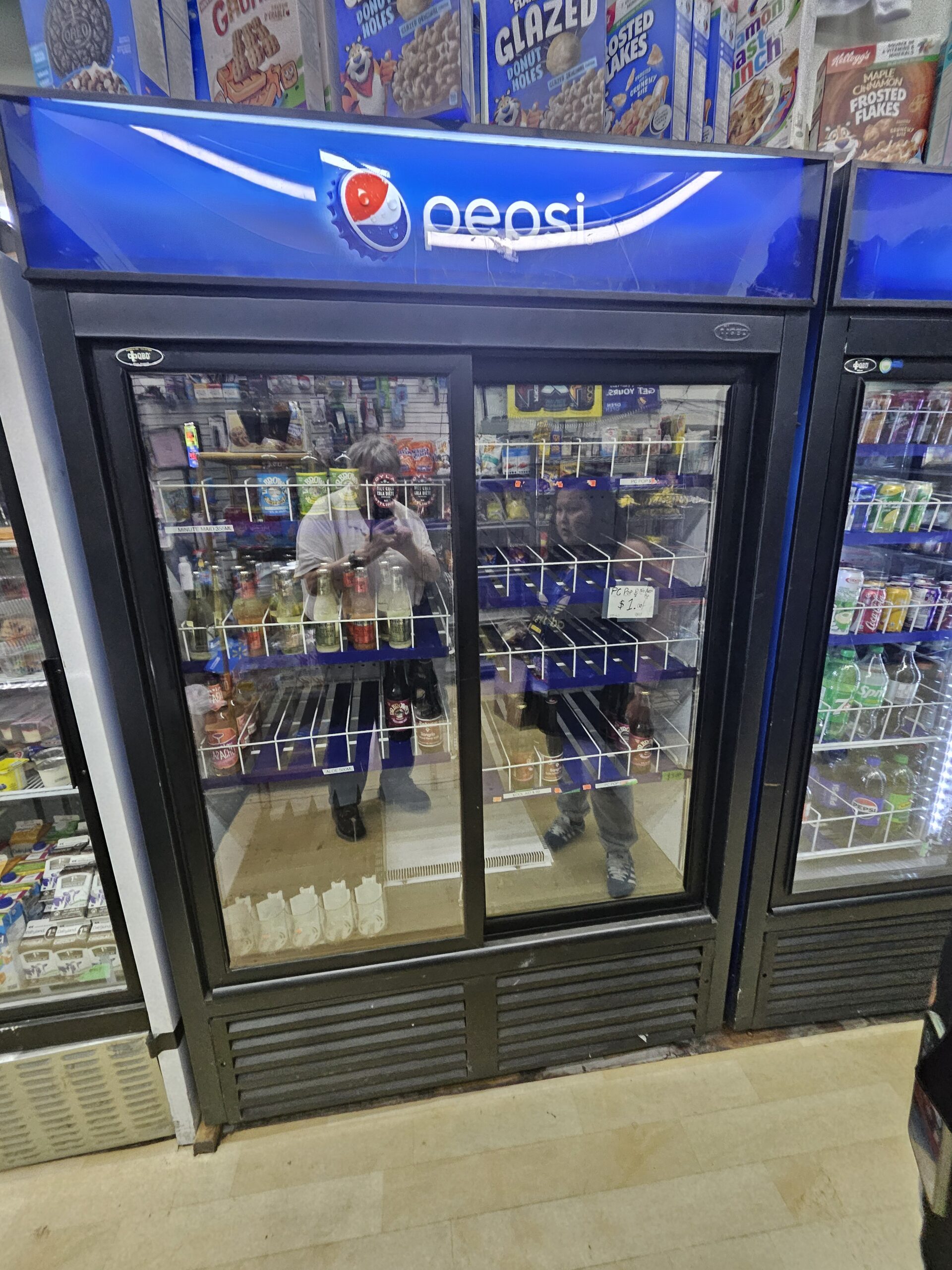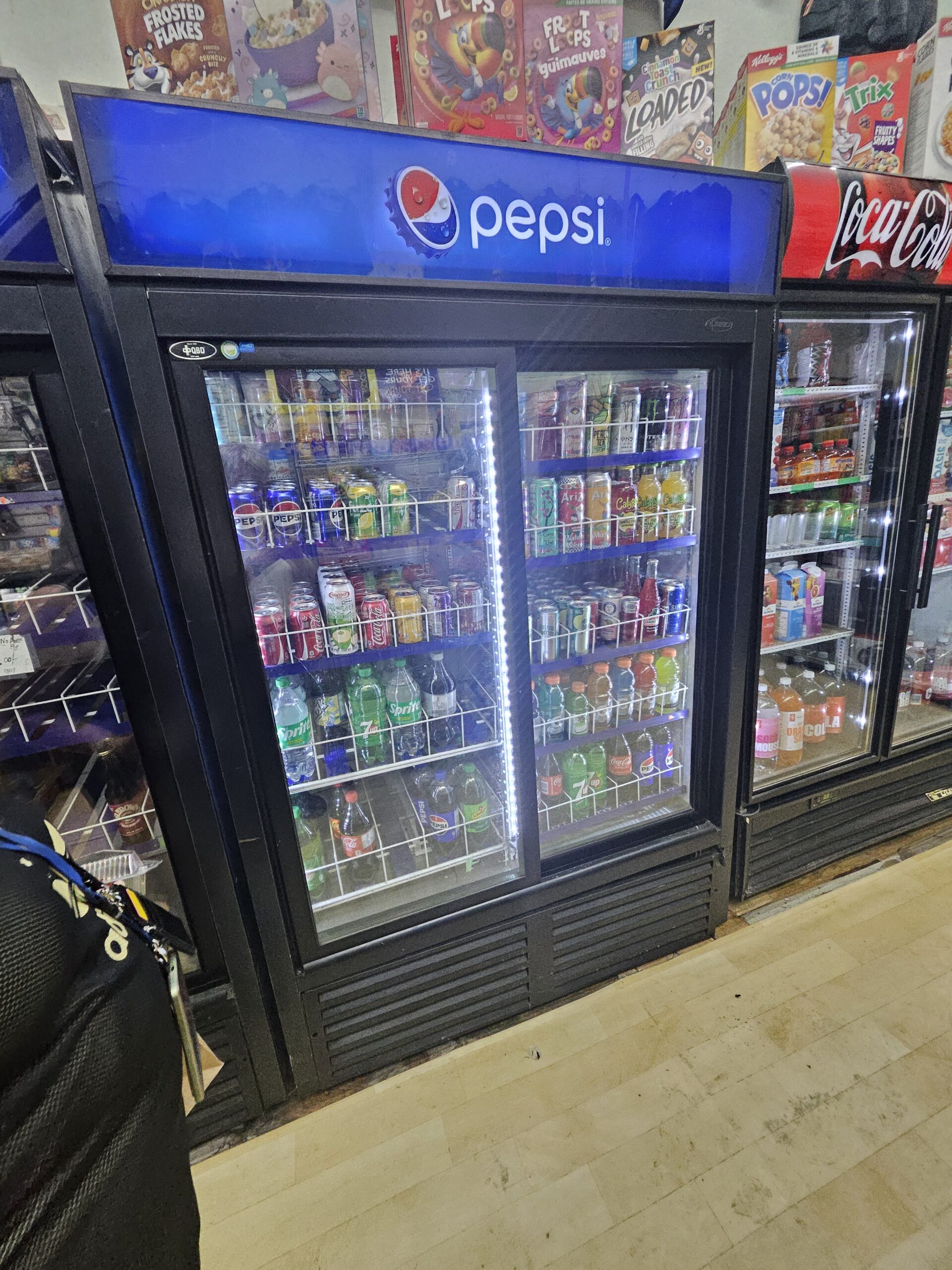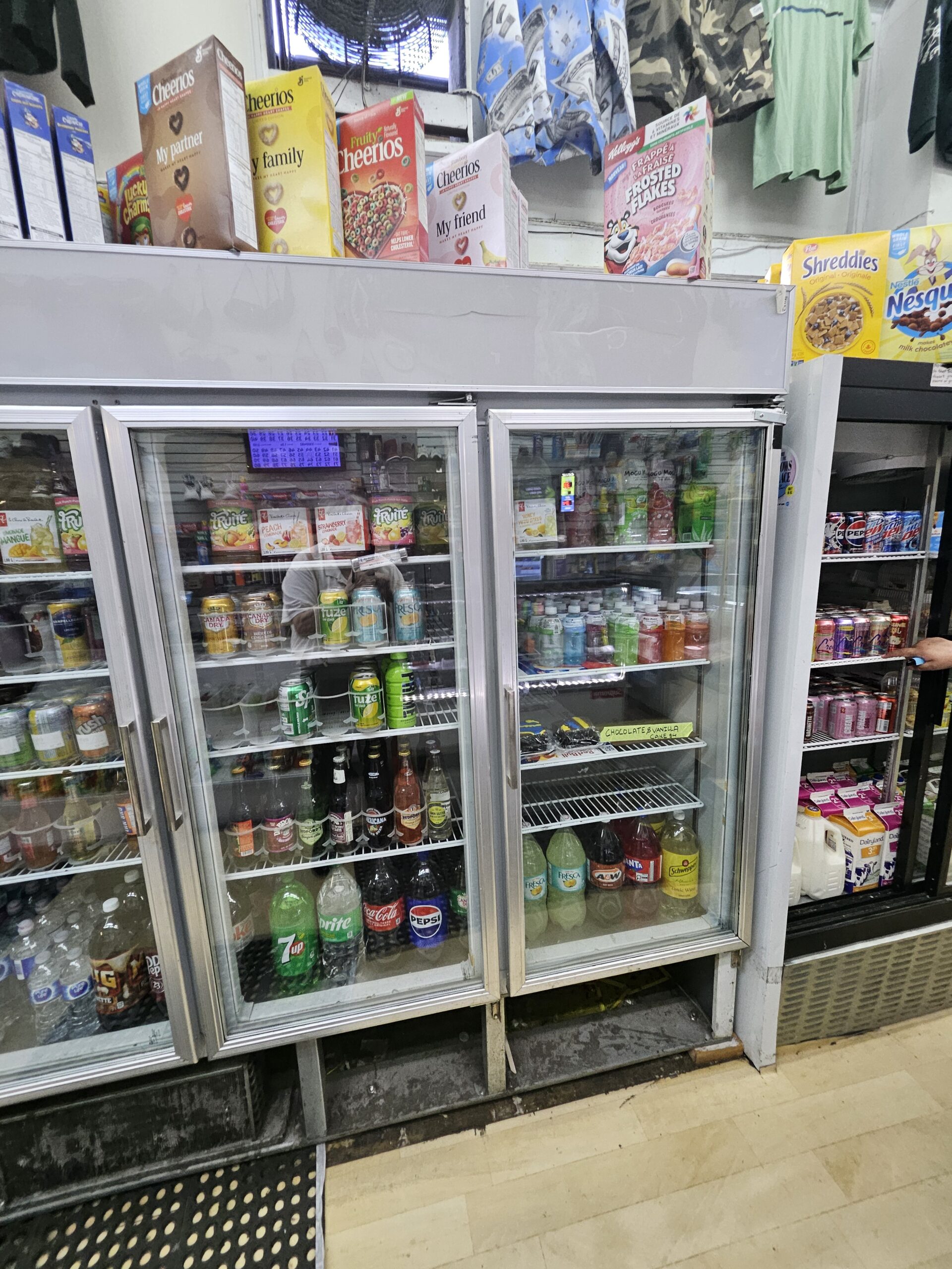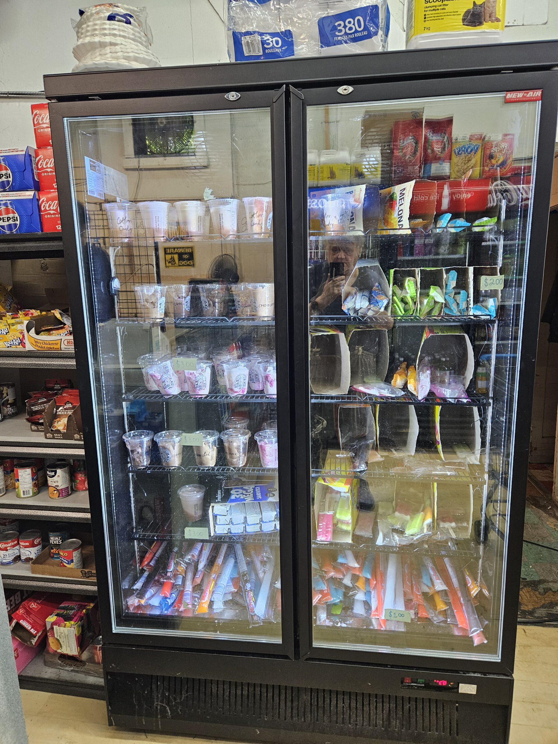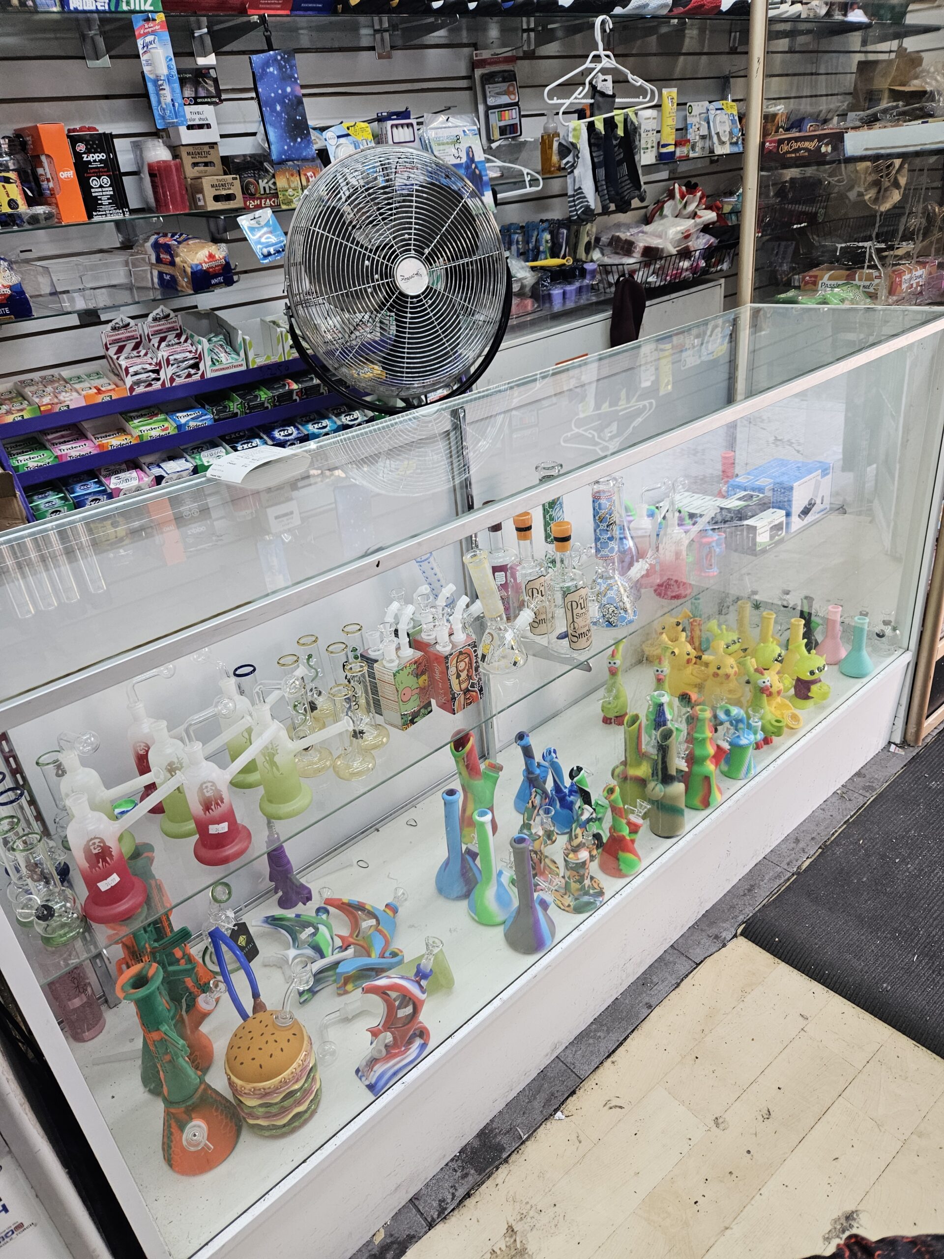 Milk, Pop, Ice Cream, Candy, Small Groceries, Smokes, Sandwiches, Pastries, Chips and other comfort/snack foods. Bread, Milk, Dairy – Yogart, cheese. Bongs and other supplies, tobacco and accessories, canned goods, a large assortment of shoes, backpacks, handbags, and shirts, and more.
